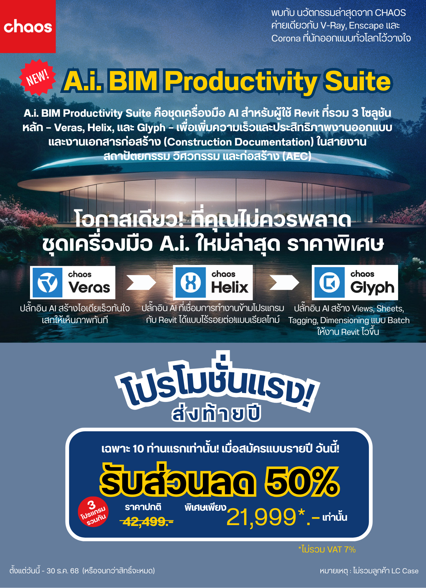 A.i. BIM Productivity Suite คือชุดเครื่องมือ AI สำหรับผู้ใช้ Revit ที่รวม 3 โซลูชันหลัก — Veras, Helix, และ Glyph