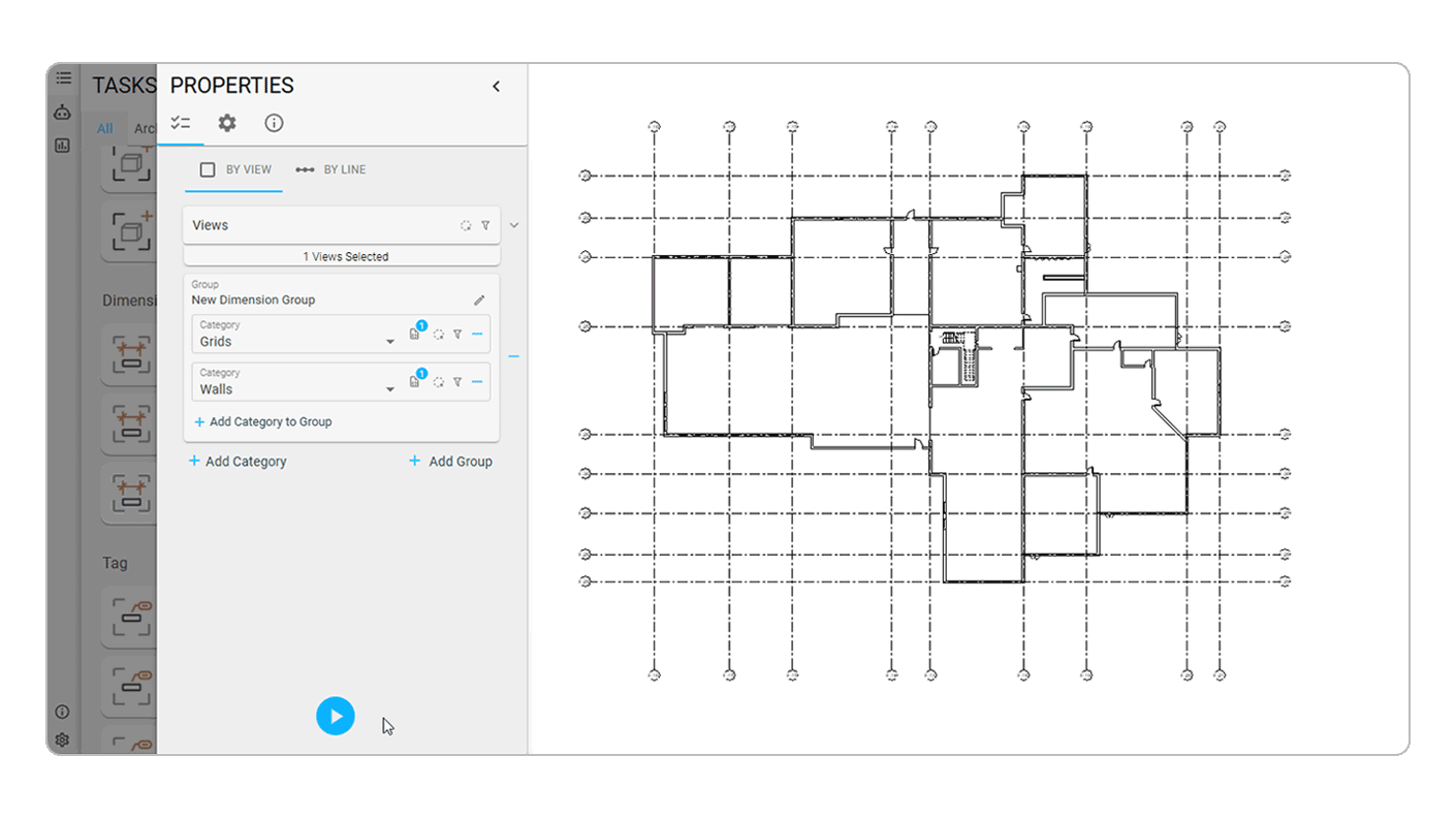 ติดแท็กมุมมองหรือแผ่นงานตามหมวดหมู่ เลือกองค์ประกอบที่จะติดแท็กได้โดยตรงจากภายในโมเดล BIM ของคุณ และปรับแต่งทิศทางการติดแท็ก เงื่อนไขเส้นนำ และประเภทแท็กสำหรับแต่ละหมวดหมู่ที่เลือก