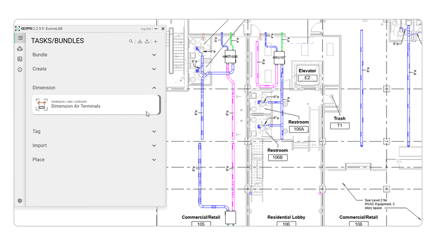 Glyph คือเครื่องมืออัตโนมัติสำหรับ Revit ที่ช่วยลดความยุ่งยากในงานจัดทำเอกสาร เช่น การสร้างมุมมอง แผ่นงาน แท็ก และขนาดต่างๆ ได้ในไม่กี่คลิก ช่วยให้ทีมประหยัดเวลาในการร่างแบบด้วยมือหลายชั่วโมง โดยเปลี่ยนเวิร์กโฟลว์ BIM ที่ซ้ำซากจำเจให้เป็นกระบวนการที่รวดเร็ว นำกลับมาใช้ใหม่ได้ และสม่ำเสมอ